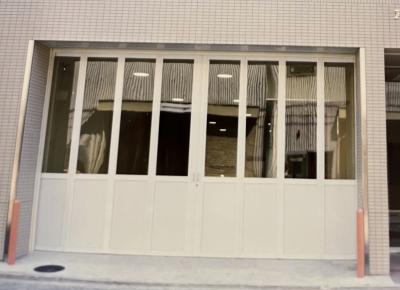 改修工事は既存扉の解体撤去・天井レールと床レールの取替、床部はコンクリートの斫りと打ち直しで3日工程となりました。