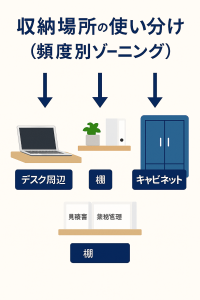 使用頻度に応じて収納場所を見直すことで、動線がスムーズになり、